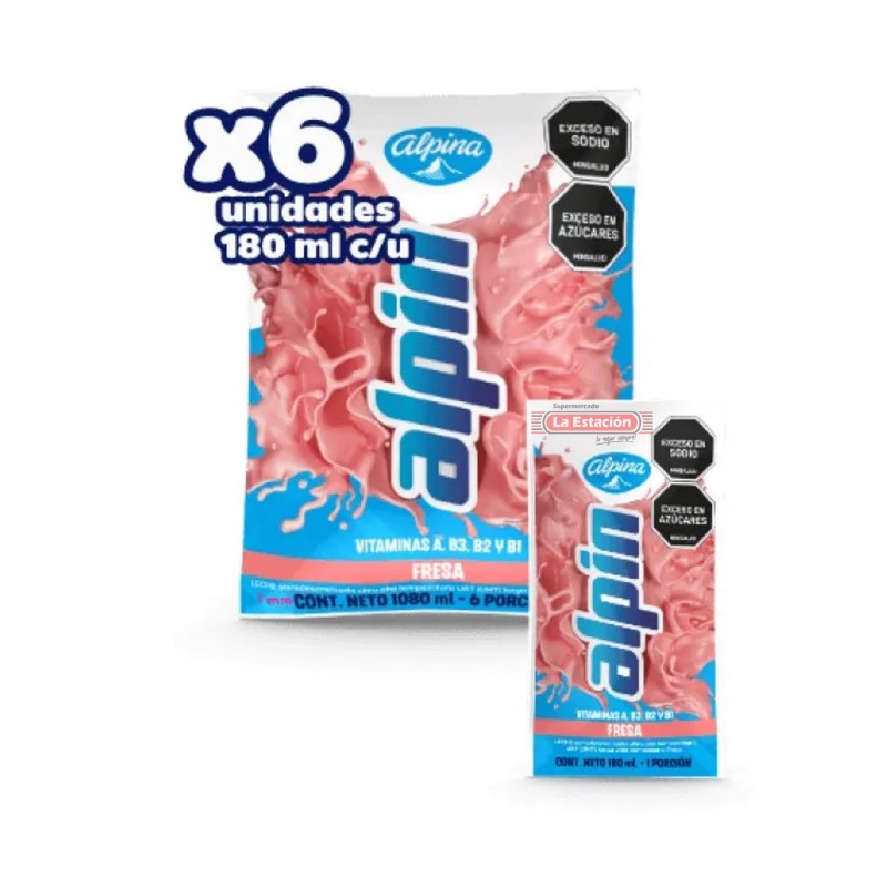 LECHE LIQUIDA SABORIZADA ALPIN SIXPACK x 180 ML FRESA