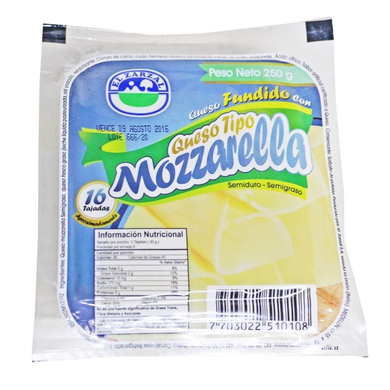 QUESO MOZARELLA EL ZARZAL TAJADO X 250 GRAMOS