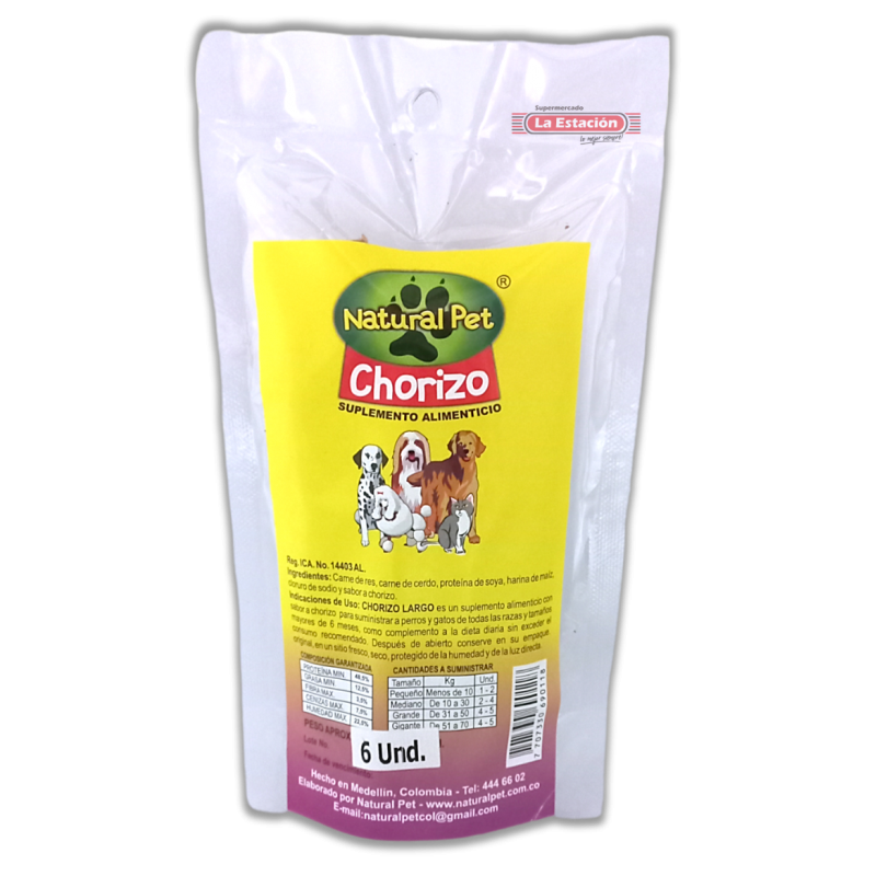 CHORIZO NATURAL PET BOLSA x 6 UNIDADES
